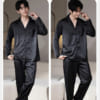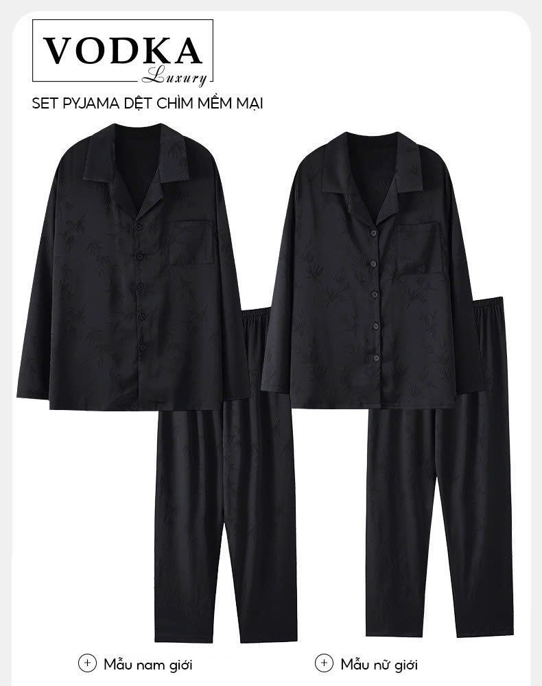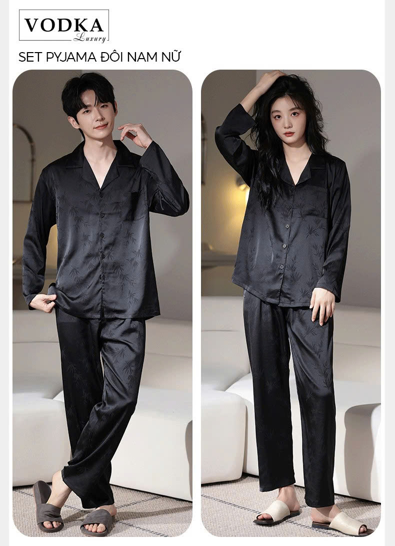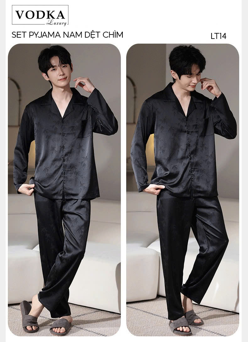 Bộ đồ ngủ đôi nam nữ lụa gấm hoạ tiết lá trúc thanh lịch LT14