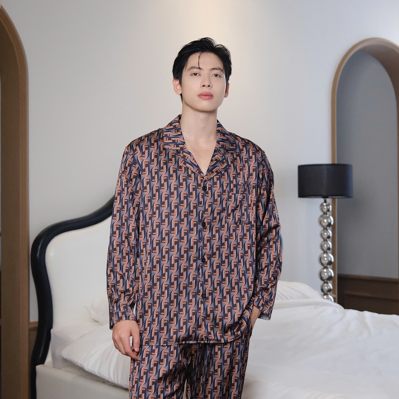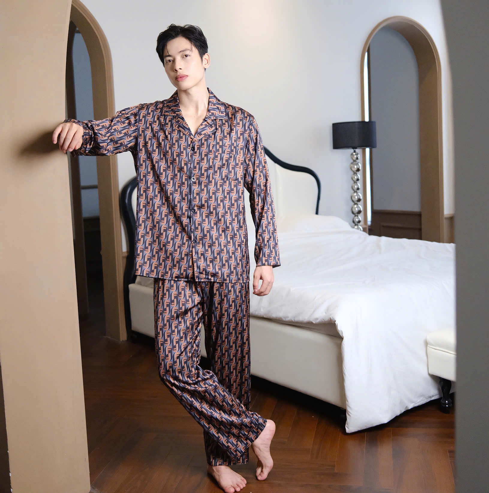 Đồ Ngủ Nam Cao Cấp Họa Tiết Fendi Loang Nâu Đen FD 14 Sang Trọng Đẳng Cấp