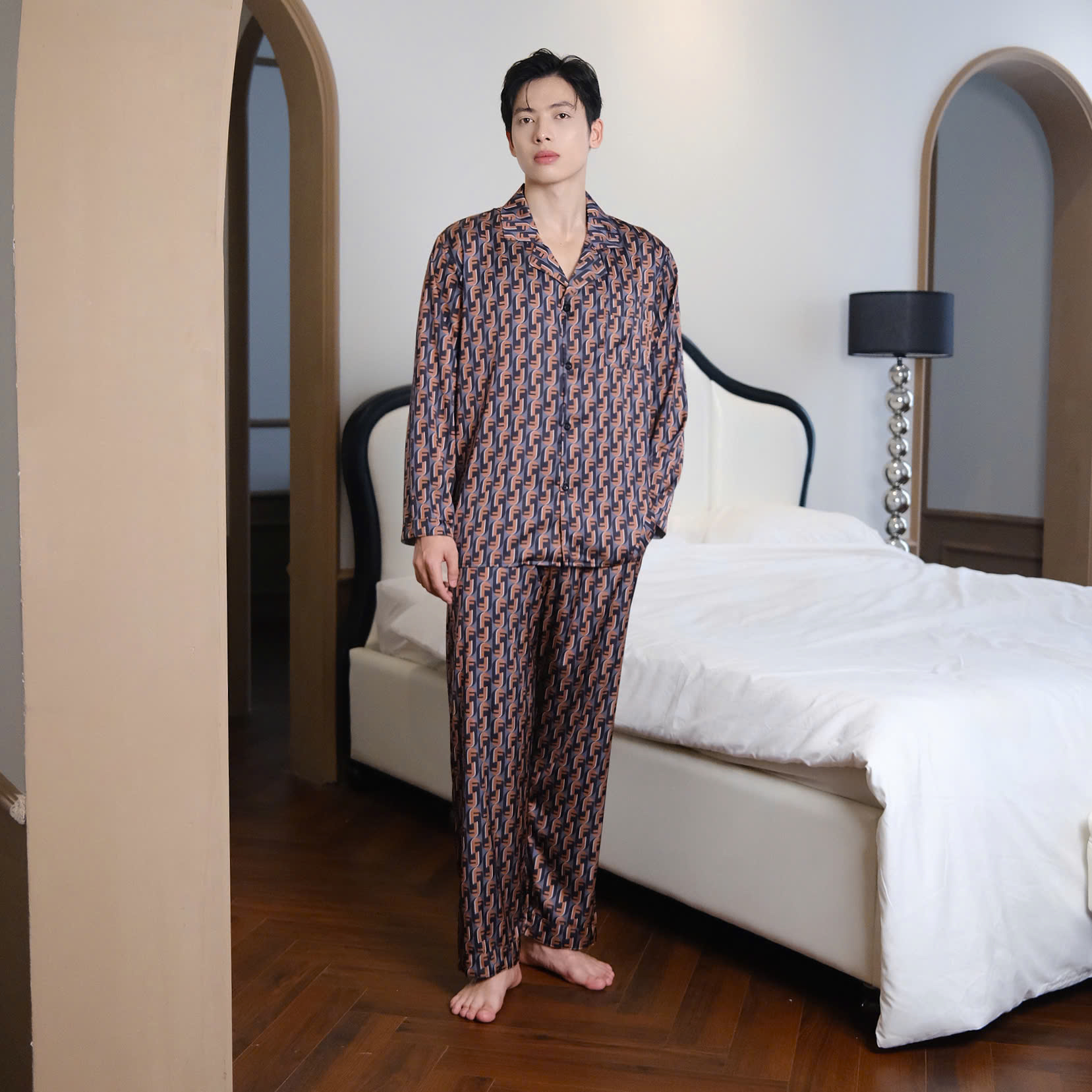 Mang hơi thở thời trang đỉnh cao vào từng khoảnh khắc thư giãn, mẫu đồ ngủ nam cao cấp họa tiết Fendi loang nâu đen từ Vodka Luxury là lựa chọn hoàn hảo cho quý ông yêu thích sự sang trọng, đẳng cấp và khác biệt. Với thiết kế hiện đại, chất liệu cao cấp và điểm nhấn là họa tiết thời thượng, sản phẩm không chỉ là trang phục mặc nhà mà còn thể hiện gu thẩm mỹ tinh tế và phong cách sống đẳng cấp.